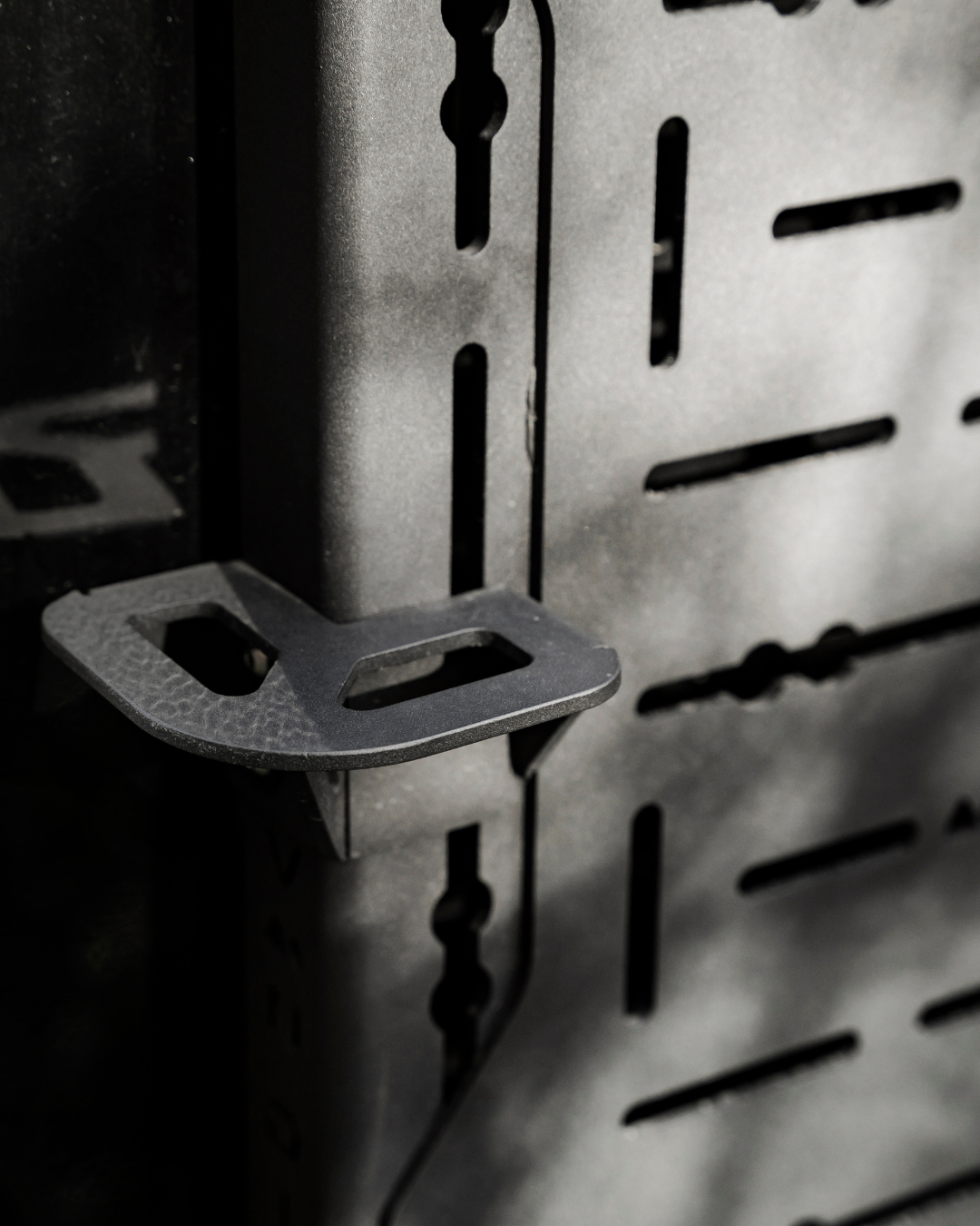 Chaque plateforme comprend une combinaison de rainures de montage de 3/8", vous permettant d’installer une grande variété d’accessoires selon vos besoins. Le produit offre également un ensemble de points d'ancrages de type "L-Track" pour y fixer des anneaux et des sangles. La capacité de charge recommandée par RAM est de 200 lbs par porte.